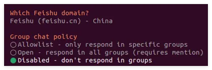 Feishu (feishu.cn) - China询问是否在群内响应,根据需要选择(一般选 No)。