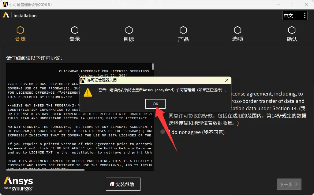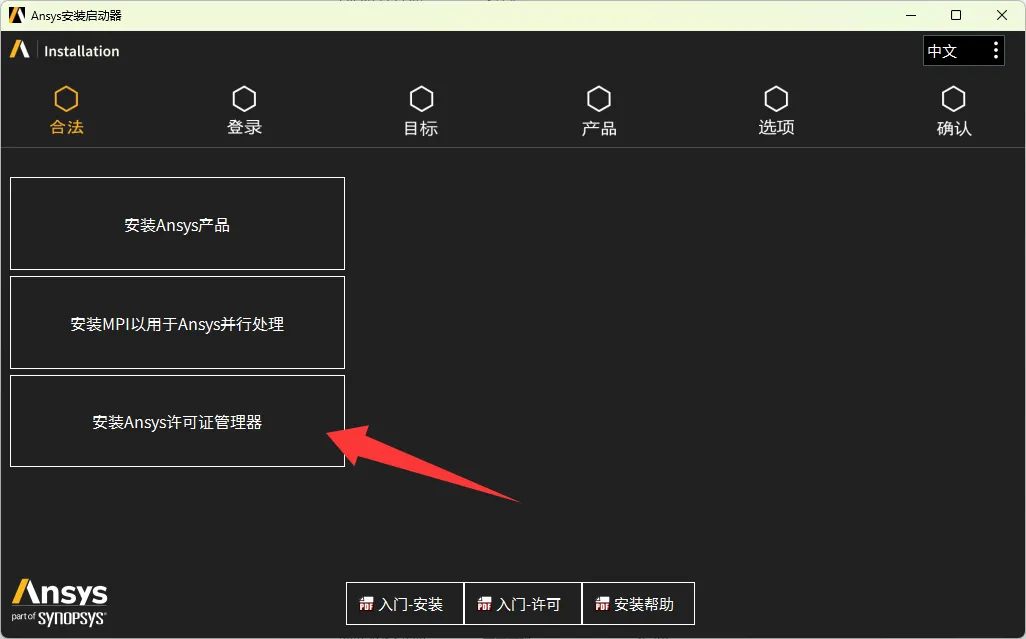 3、选择安装Ansys许可证管理器。
