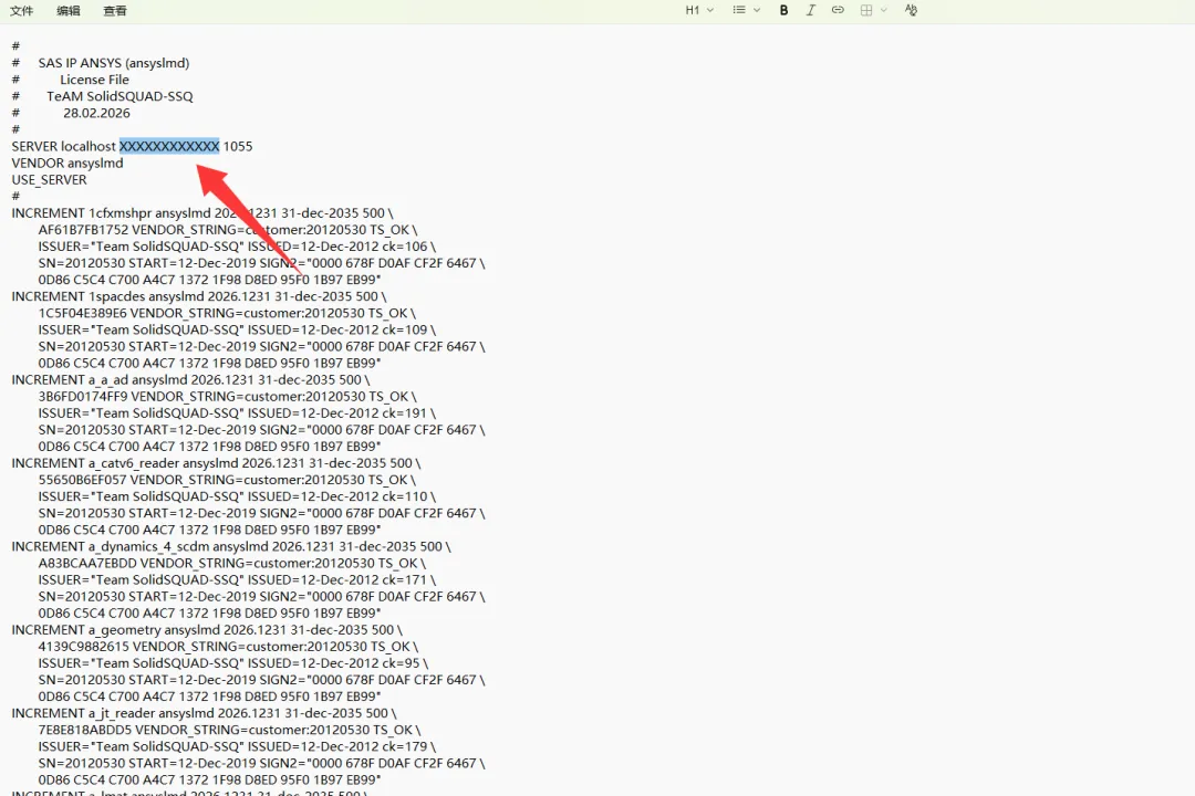 17、将xxxxxxxxx替换为前面复制的Hostid,然后保存。