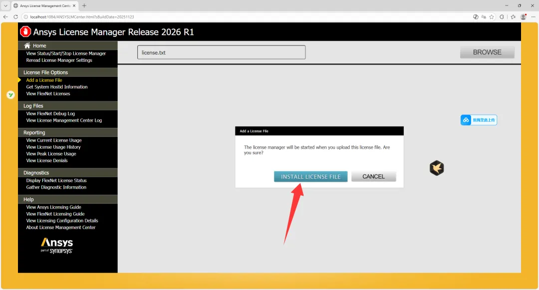 19、点击INSTALL LICENSE FILE。