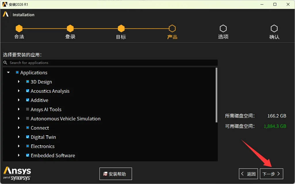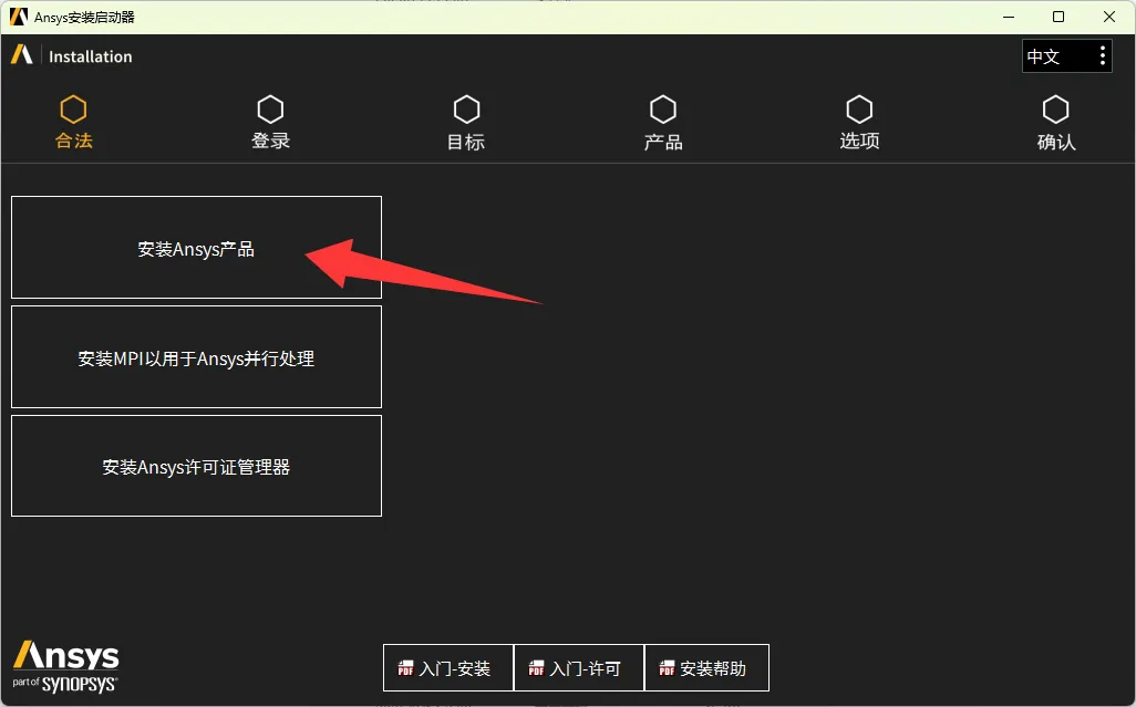 22、点击安装Ansys产品。