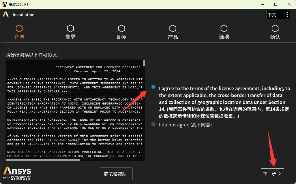 23、勾选许可协议,点击下一步。