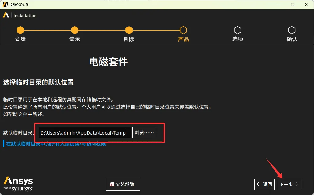 26、设置电磁套件的临时默认目录,不勾选安装电磁模块就不需要设置。