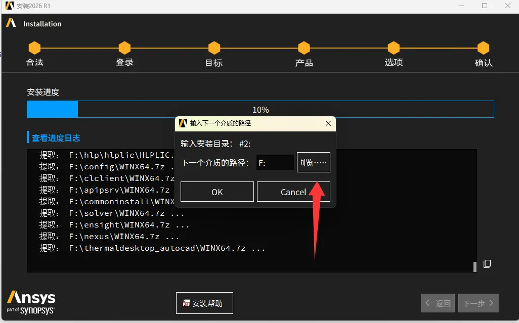 34、安装进度到10%需要选择下一个光驱文件,即disk2。(记住和disk1一样还是先加载在选择)