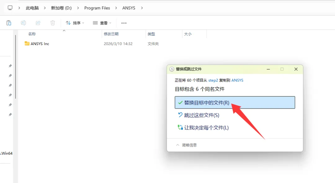 42、到ansys主程序的安装路径下进行粘贴替换。