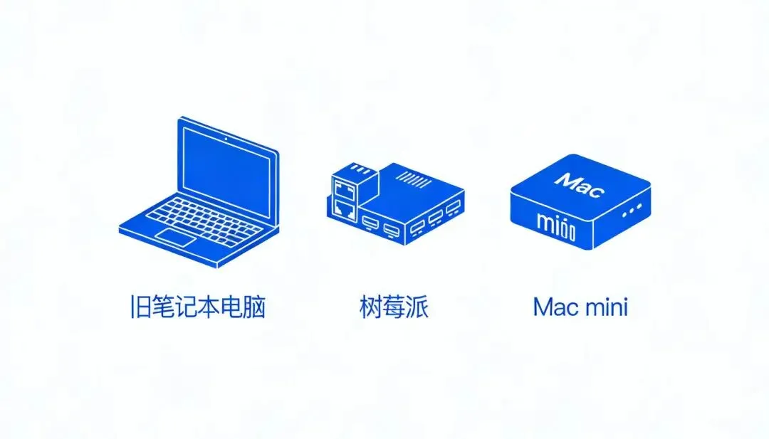 家里吃灰的旧笔记本、50 美元的树莓派、闲置台式机都能用