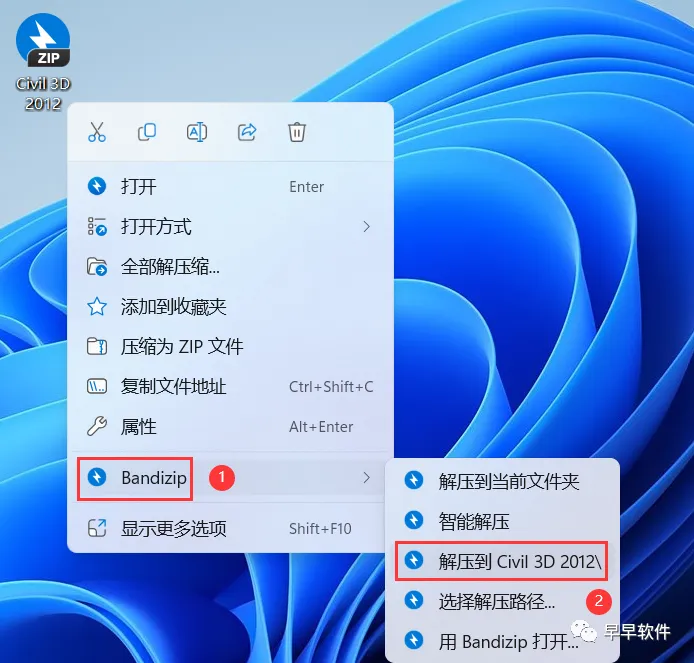 1、下载Civil 3D 2012软件安装包到电脑上,右键选择【解压到Civil 3D 2012\】