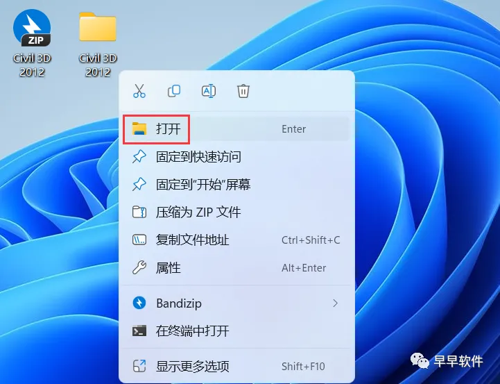 11、回到桌面,右键桌面上的【Civil 3D 2012软件图标】,点击【打开】