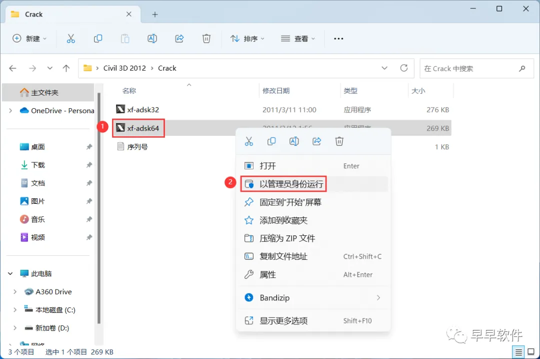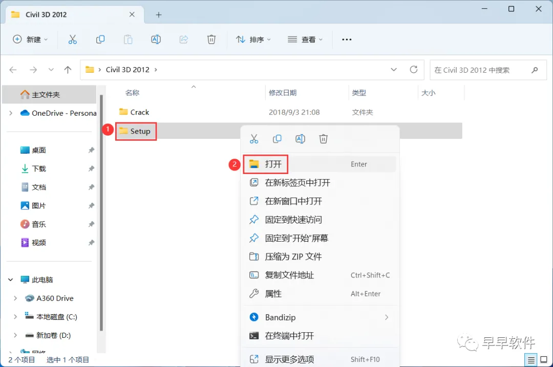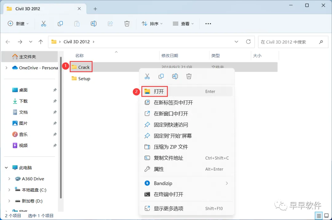 20、回到Civil 3D 2012文件夹,找到【Crack】文件夹,右键【打开】它