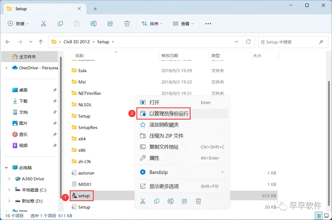 4、找到【setup】应用程序,右键选择【以管理员身份运行】它