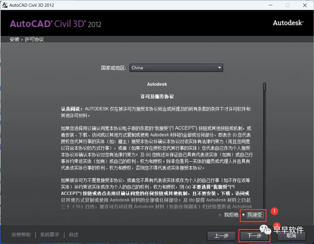 6、勾选【我接受】,再点击【下一步】