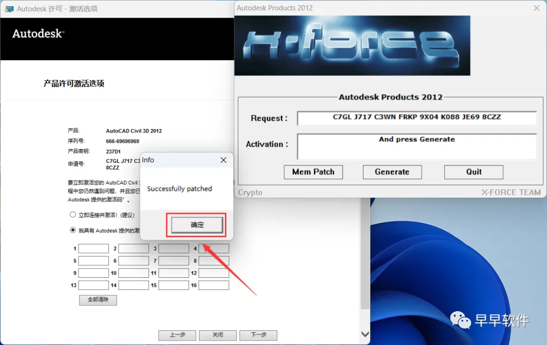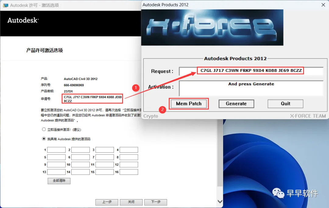 22、打开软件界面,将软件的【申请号】填入到程序的【Requset】内,再点击【Mem Patch】