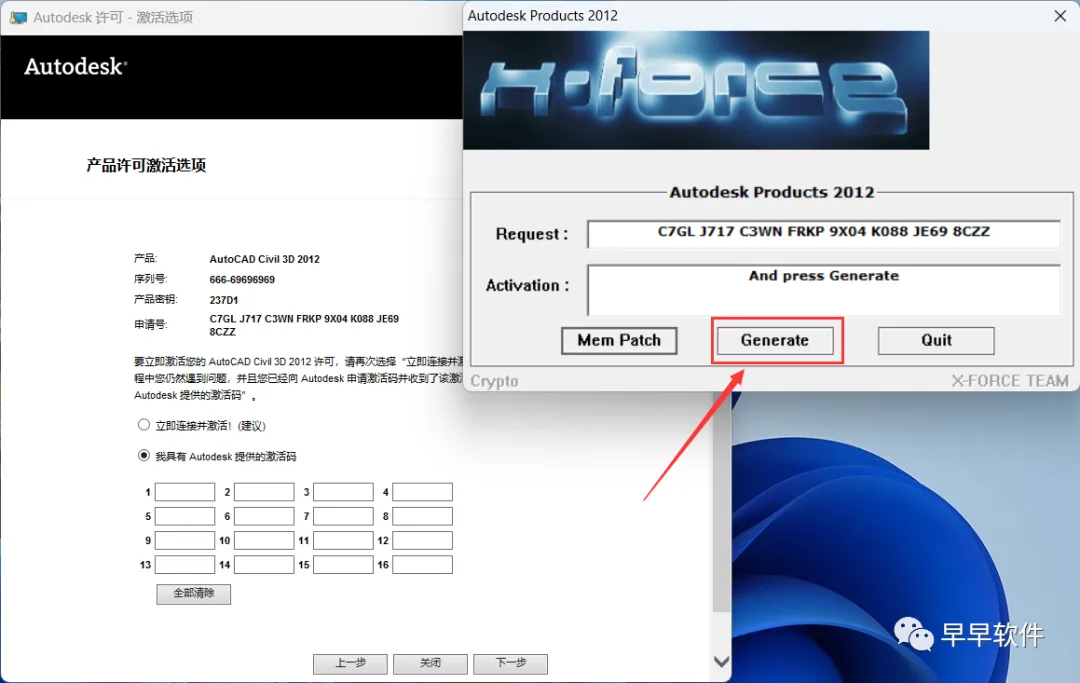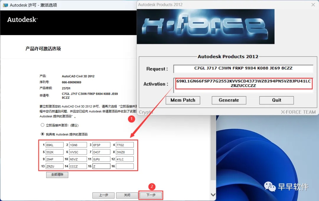 25、将程序的【Activation】填入到软件的【激活码】内,再点击【下一步】