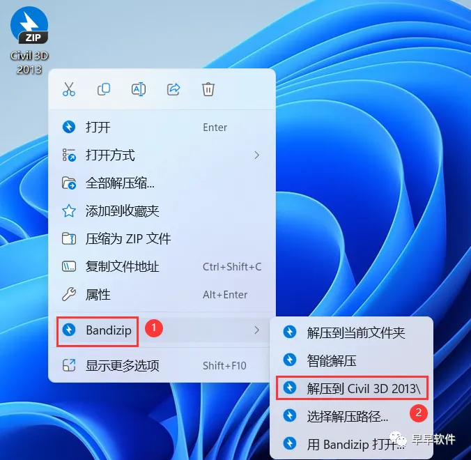 1、下载Civil 3D 2013软件安装包到电脑上,右键选择【解压到Civil 3D 2013\】