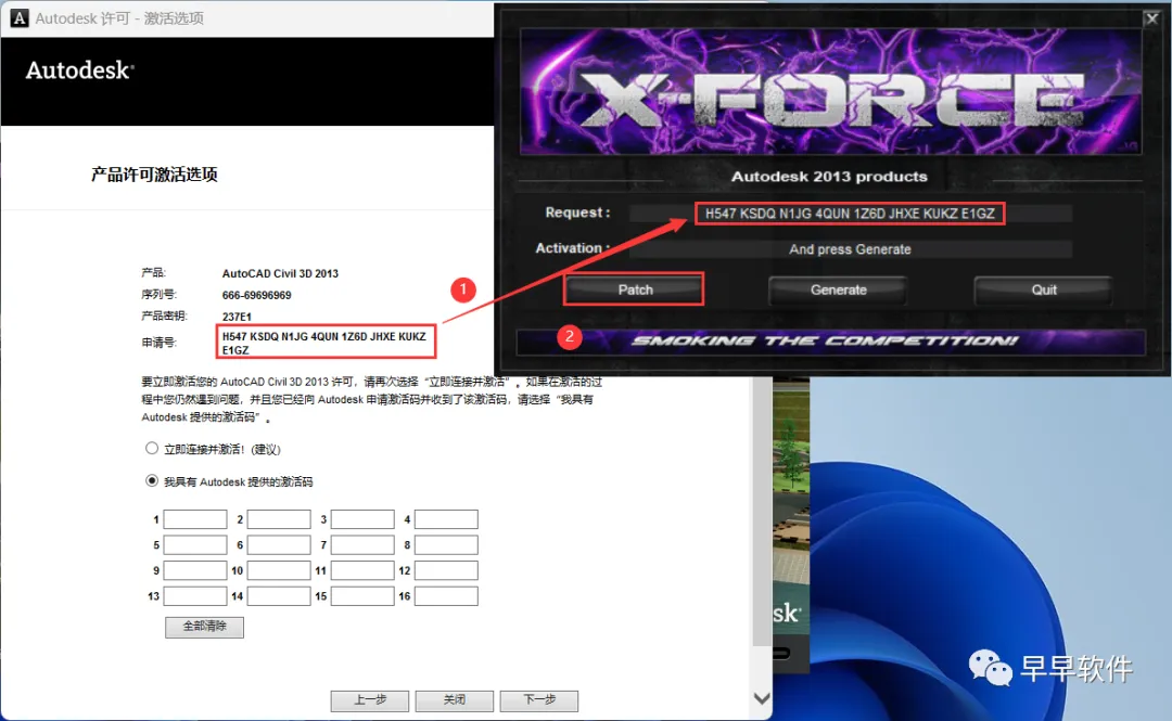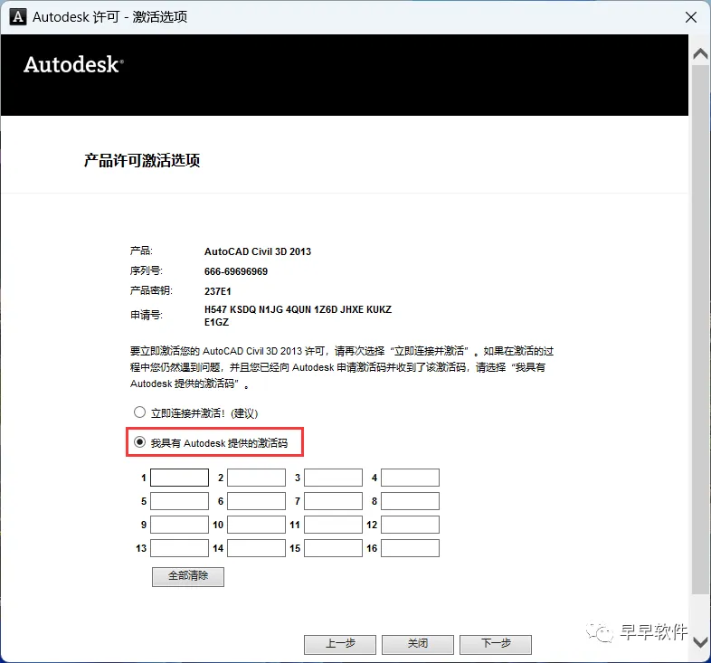 24、将程序的【Activation】填入到软件的【激活码】内,再点击【下一步】