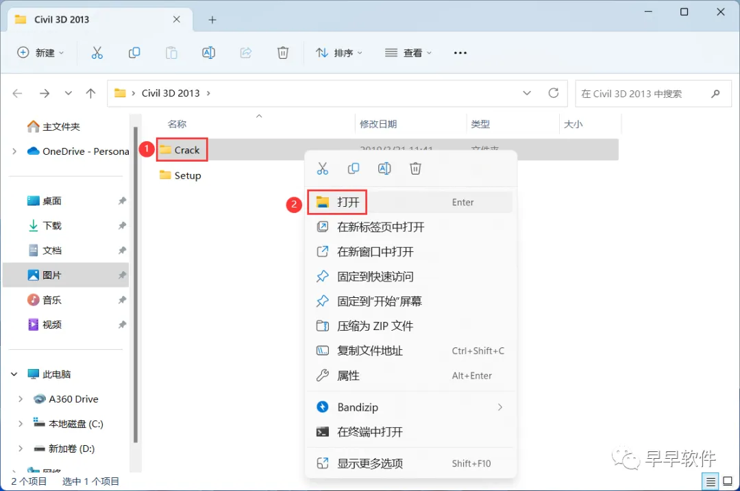 19、回到Civil 3D 2013文件夹,找到【Crack】文件夹,右键【打开】它