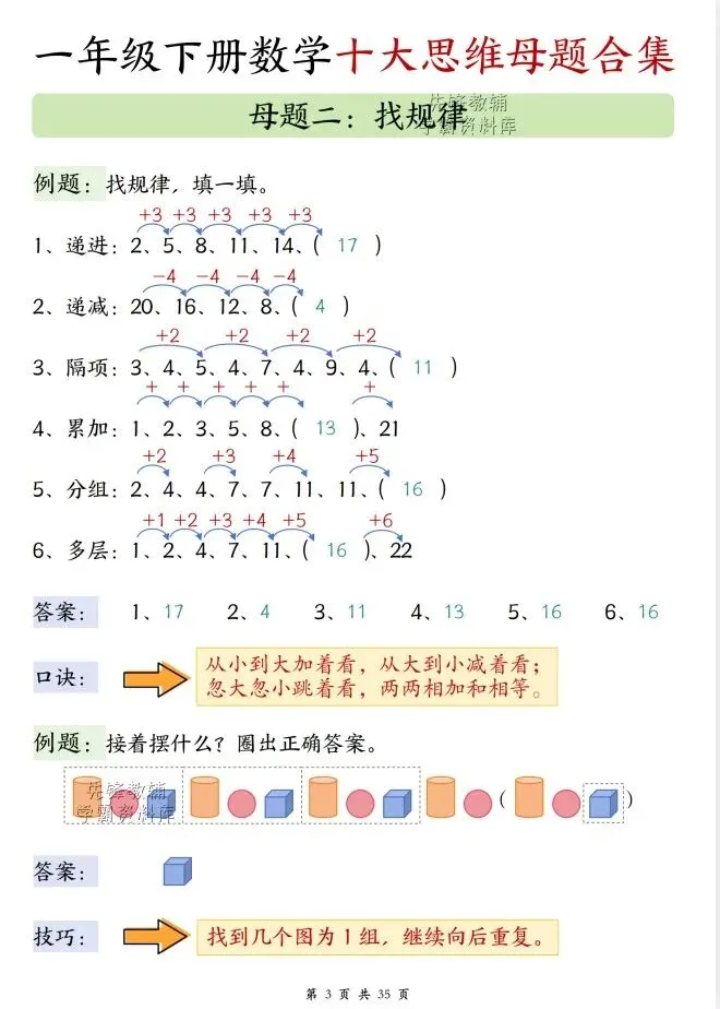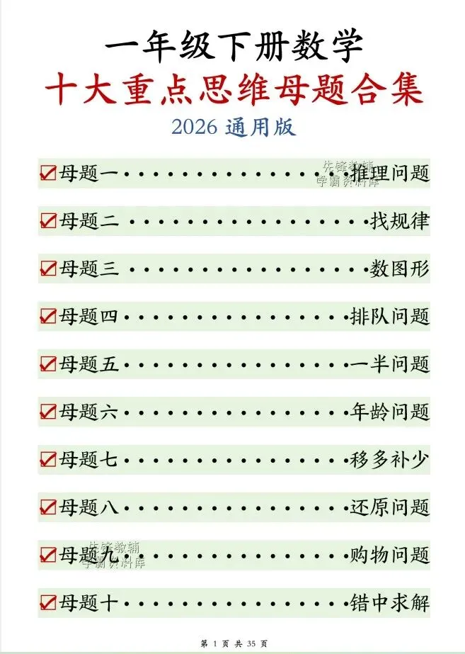 今天给大家整理了26春一年级下册数学十大思维母题合集,转发给朋友或班级群,受益更多人,帮助孩子学习!