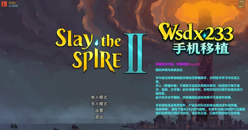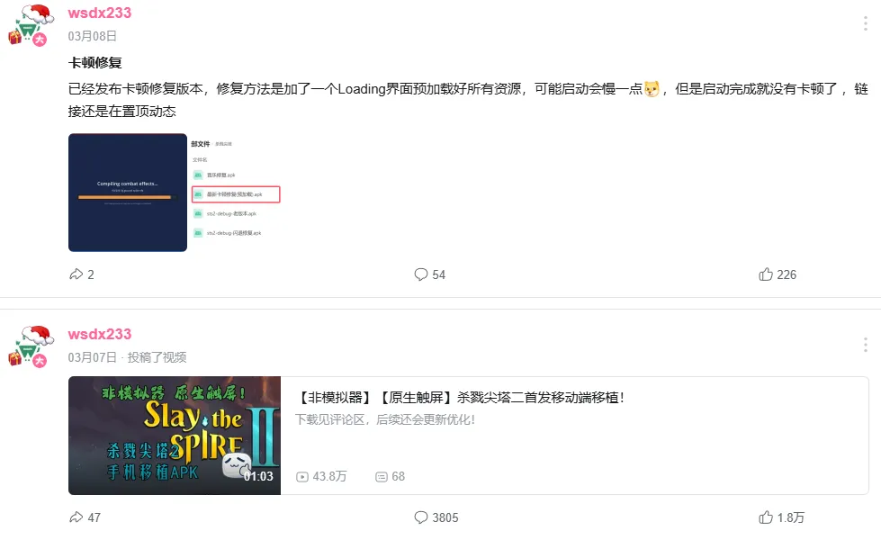 但他们可能万万没想到,另一场“狂欢”比他们的游戏更新来得还快,就在游戏发售还不到40个小时,甚至很多玩家第一轮卡组还没养熟的时候,一个叫“wsdx233”的大神,直接在B站和各大手游下载站扔出了《杀戮尖塔2》的手机移植版。