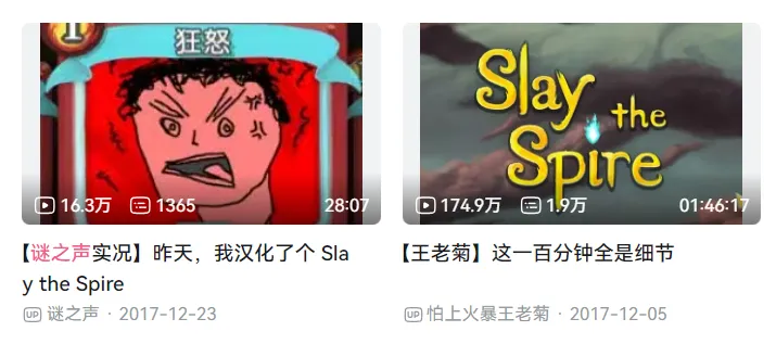 王老菊当年那几期实况视频,用他标志性的“老菊式”理解,把这游戏的独特魅力挖得透透的,节目效果直接拉满,同一时间,谜之声也主动承担了初代的汉化工作,让不懂英文的国内玩家也能入坑。(这次《杀戮尖塔2》的民间汉化,谜之声又出手了。)