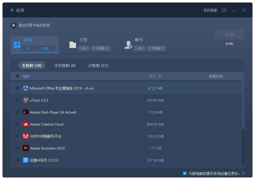 第三步:选择要迁移的软件