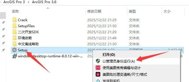6:返回到解压好的文件夹,选中【Setup】,右键选择【以管理员身份运行】