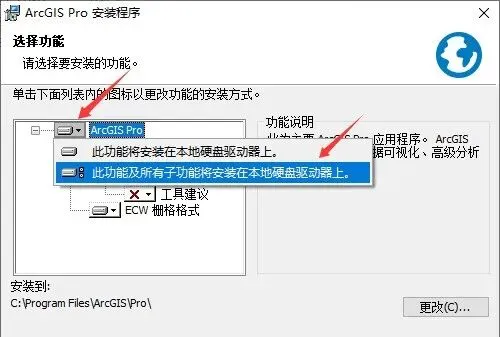 11:先点击【三角形展开符】,然后选择【此功能及所有子功能将安装到本地硬盘驱动器上】