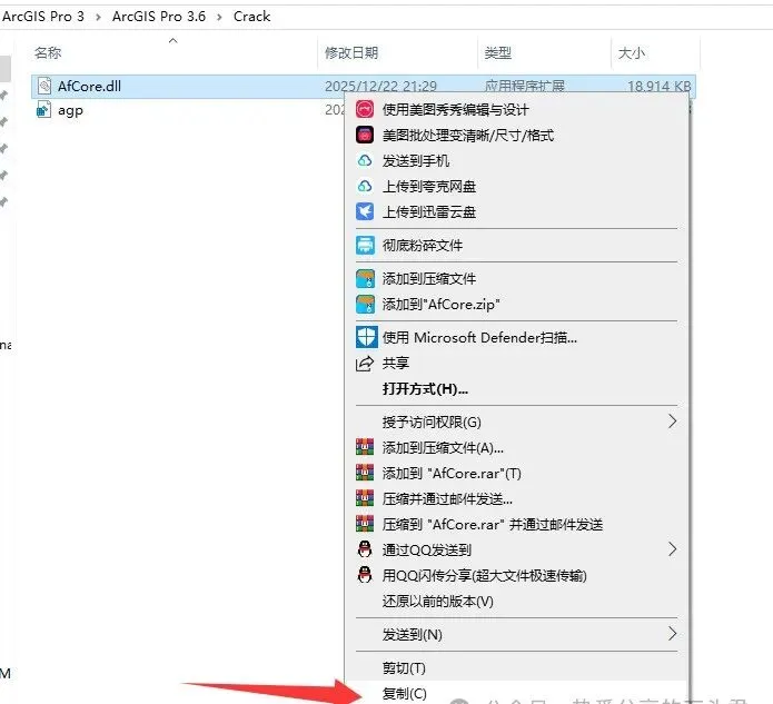 23:选中【AfCore.dll】文件,鼠标右键选择【复制】