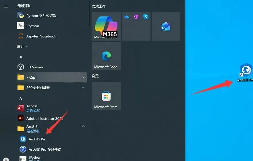 24:点击桌面【开始菜单栏】,找到【ArcGIS Pro图标】,选中直接拖动到桌面上即可创建桌面快捷方式