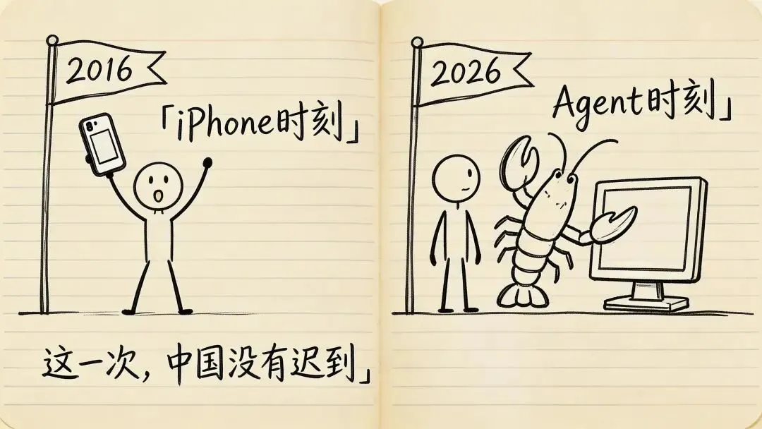 如果说2016年是智能手机的iPhone时刻——苹果定义了"什么是好手机",中国厂商只能追赶。那么2026年,就是AI的Agent时刻——OpenClaw定义了"AI助手该长什么样",但这次,中国企业几乎和海外同步起跑。