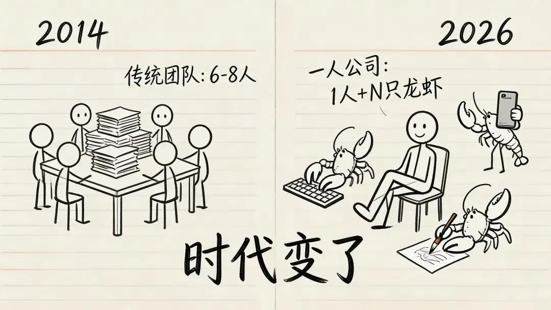 传统互联网公司做一个产品,最精简也要6-8个人,月薪成本少说15-20万。现在用龙虾呢?