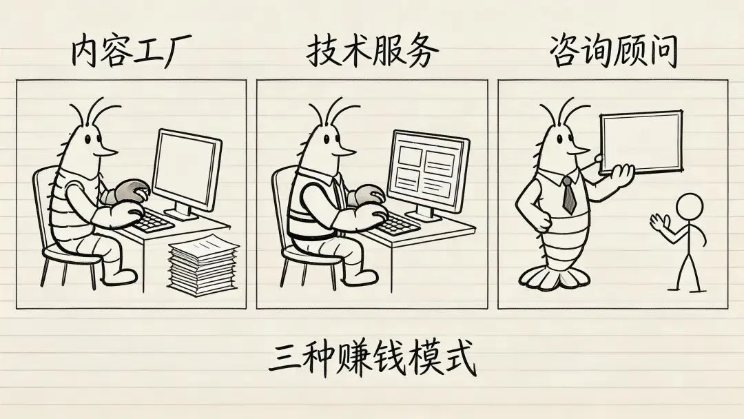 咨询顾问模式——AI替你干活,你替客户拍板,卖的是判断力。以前调研一周的项目,龙虾半天出报告。