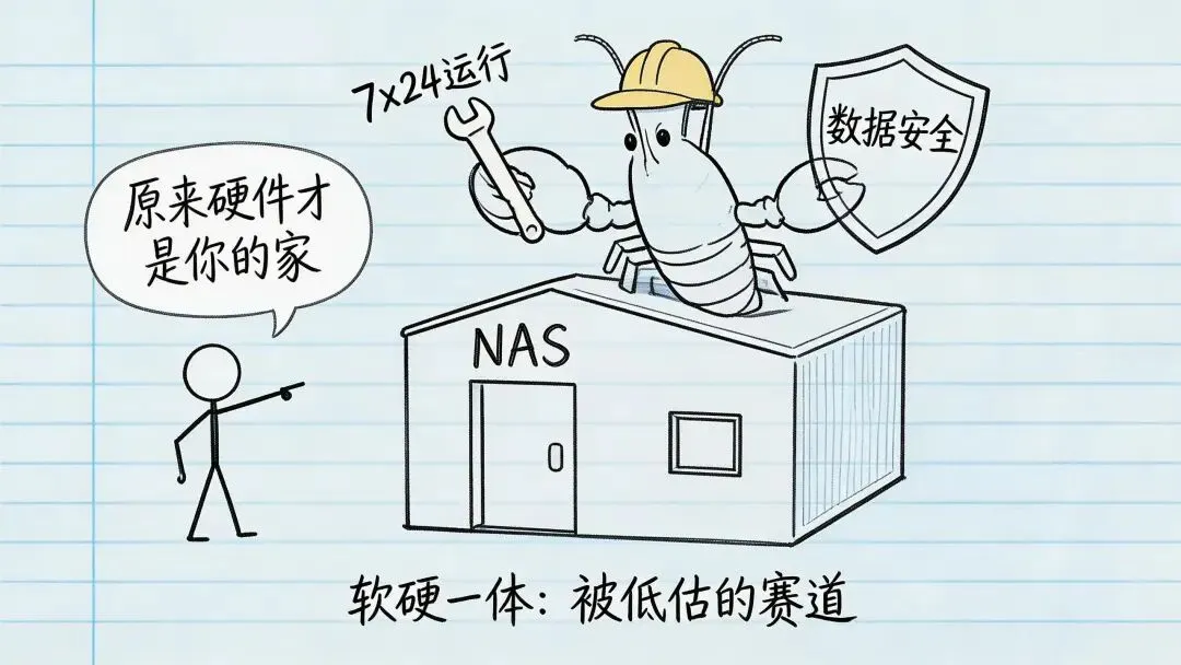 华源证券从家电行业视角切入:NAS(网络附属存储)恰好能解决OpenClaw的三大痛点——安装麻烦、数据丢失风险、隐私泄露。7x24小时低功耗常开,龙虾误删文件一键回滚,部署在独立硬件上形成网络孤岛。