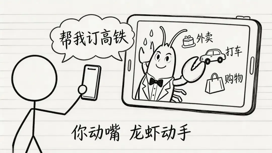 你说:"帮我订明天去上海的高铁。"AI自动打开12306小程序 → 筛选班次 → 选座 → 完成支付。全程你不需要点一个按钮。