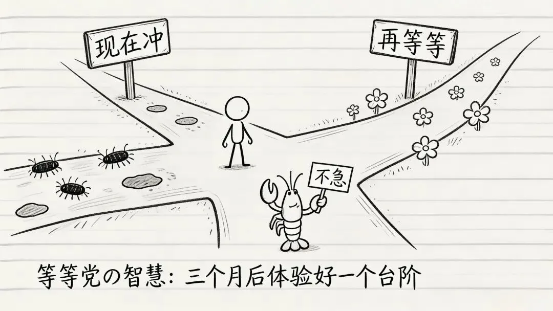 但反过来,如果你有明确的应用场景、有基本的技术能力、能接受"带实习生"的耐心——那现在入场完全没问题。毕竟,等等党等到最后,往往发现先行者已经跑出了整套方法论。