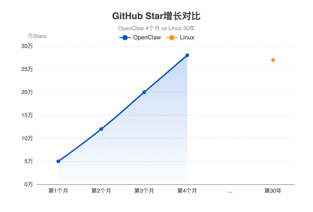 4个月后,这个"周末项目"的GitHub星标突破28万,超越Linux,成为史上最受欢迎的开源项目。