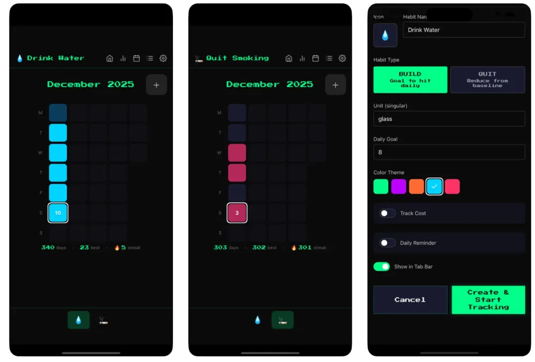 一款习惯培养提醒软件,设计为复古的像素视觉,搭配上怀旧音效,将每日习惯打卡转化为彩色热力图,轻点即可记录进度,让习惯追踪趣味又轻松。设备需装有 iOS 14或更高版本。
