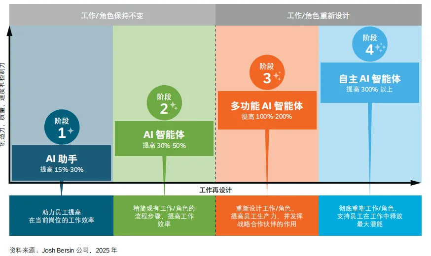 报告指出,AI 有望让每一位员工都成为“超级员工”,显著提高生产力、绩效和创造力。HR 领导者需要将 AI 视为重塑企业内部工作和角色的催化剂,通过重新设计工作流和提升员工技能,赋能员工发挥全部潜能。