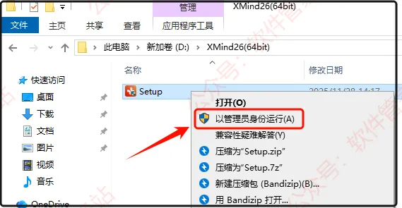 第三步:选中解压出来的【setup】安装文件,右击【以管理员身份运行】。