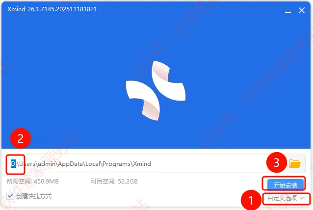 第四步:点开【自定义选项】,将安装位置改为D盘,然后点【开始安装】。