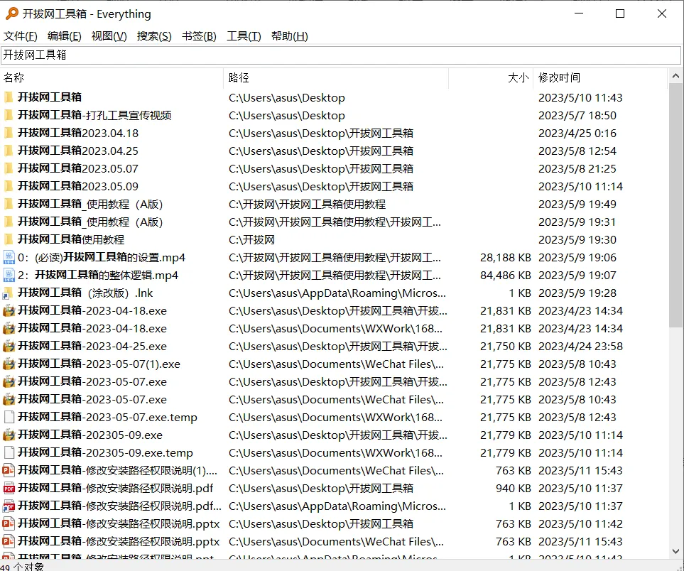 2、双击Everything*.exe打开即可使用,比如我搜开拔网工具箱