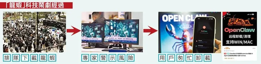 「龍蝦」OpenClaw剛推出時,曾出現深圳上千人排隊「免費領養」龍蝦AI的壯觀場面,甚至不少用戶當時不惜付費請人代勞安裝。惟不足一周後,近日「養龍蝦熱」演變成龍蝦「移除潮」。因為龍蝦AI不單存在驚人的運作成本,也令用戶資料安全面臨巨大風險,外電消息指促使內地官方私下向國企、政府機關、金融機構等發出風險提示,警告龍蝦AI可能導致資料外洩、支付賬戶等被竊取,對金融等行業可能造成毀滅性打擊,故嚴禁未經許可在辦公網絡或業務系統安裝使用OpenClaw。
