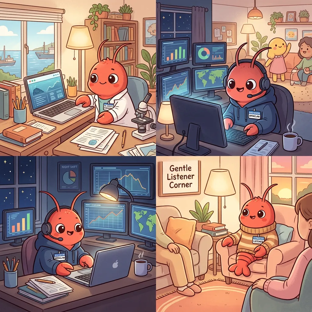 记住,千万不要把一只虾拆碎。 底子还是那只懂你的虾(它共享着你们的长期记忆区),只是在不同的场景里,它更容易进入状态。核心气质稳定,工作角色可切换。这绝不是人格分裂,而是成熟的职场/生活边界感。