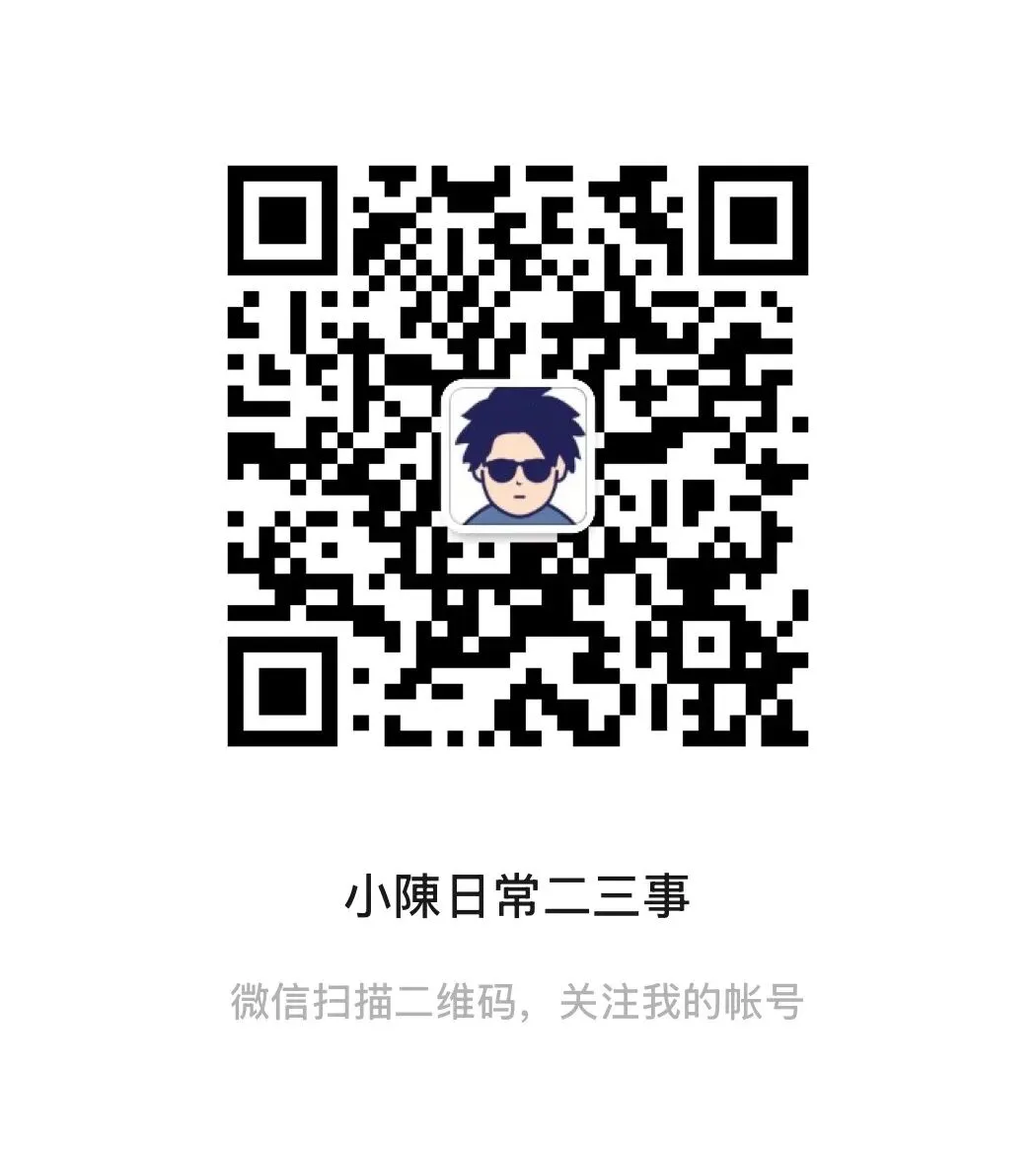 关注微信公众号:小陳日常二三事,以后将会有更多福利发给大家