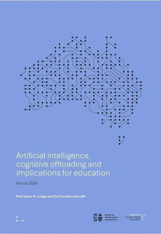 澳大利亚悉尼科技大学的Jason M. Lodge 教授与 Leslie Loble 教授于 2026 年 3 月共同发布研究报告《人工智能、认知卸载及其对教育的启示》(Artificial Intelligence, Cognitive Offloading and Implications for Education)。该报告深入探讨了生成式人工智能在澳大利亚基础教育中的普及及其带来的主要心理与教学挑战 。