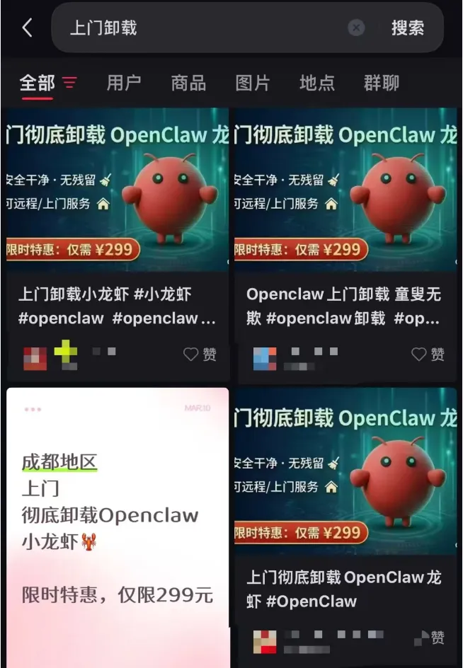 某交易平台上,“代卸载OpenClaw”服务悄然上线。部分商家明码标价:上门卸载299元,远程卸载199元,承诺“安全彻底,无残留”。
