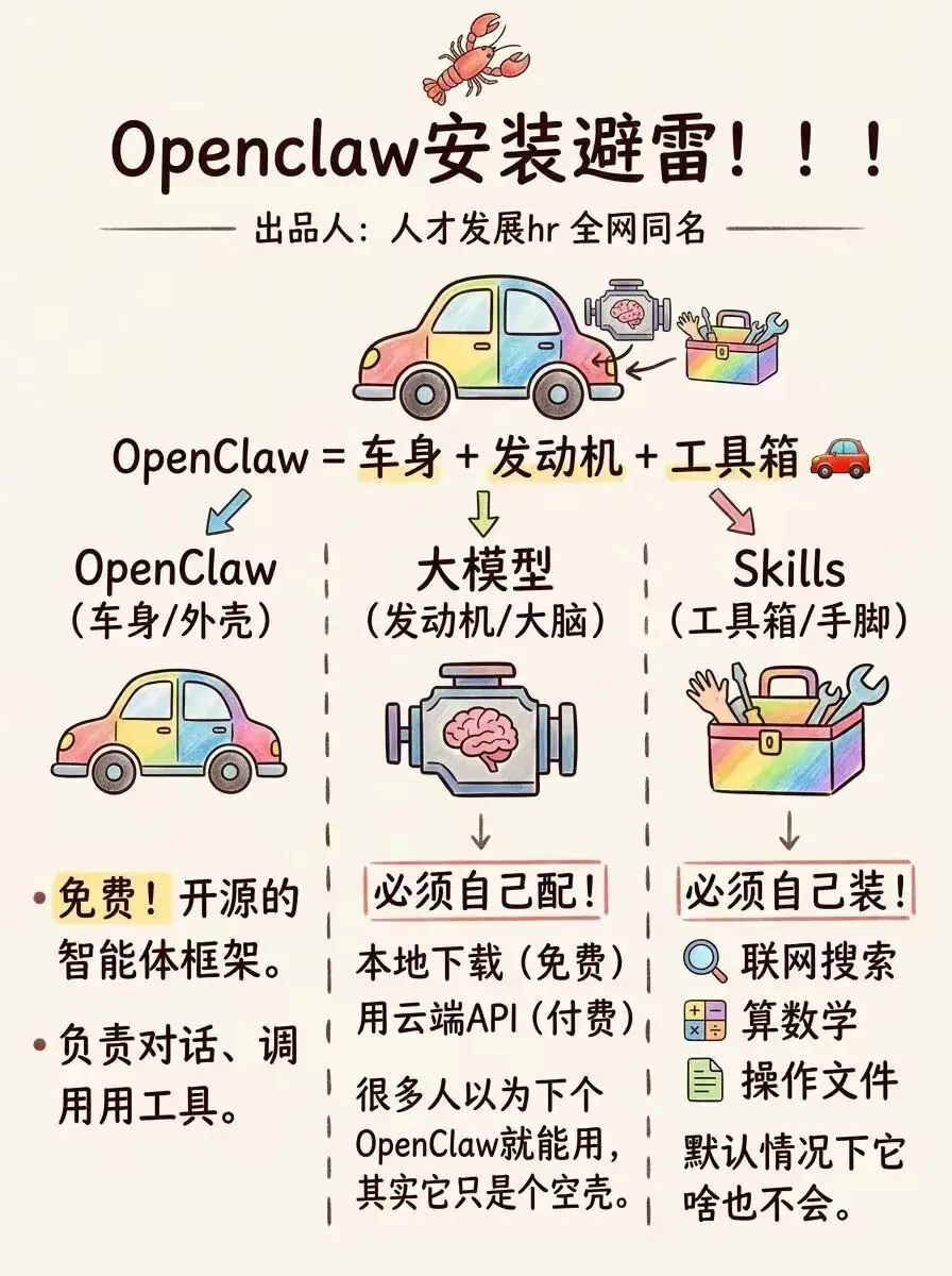 小龙虾openclaw狂欢是骗局吗?Openclaw这么火!很多人安装后才发现原来它只是个壳,还要付费买token?还要学习安装skill那这条图文就来个保姆教程!前情避雷+本地部署+激活龙虾一站式带你了解部署龙虾,你需要什么心里准备,有必要安装么?苹果系统如何安装?windows系统如何安装?安装后如何买api,如何启用skill?