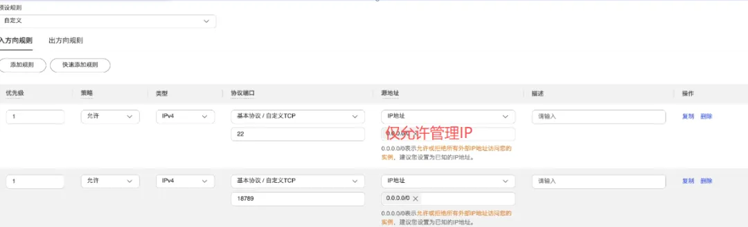 OpenClaw云上部署一只专属智能龙虾 从AI到Agent到OpenClaw,“养虾”在AI体系中火起来,以前的AI只会动嘴,后来的Agent开始动手,现在的OpenClaw直接握住了实权——它能翻你电脑、花你钱、替你干活,甚至自己指挥一群小弟组团搬砖。结果就是,满世界都在疯狂“养虾”搞钱,但也得时刻攥紧那根拴住它的“灵魂缰绳”。OpenClaw与AI不同之处:你不问它,过一段它会主动和你交互,了解你的需求。 本地链接到OpenClaw平台上以命令行的方式,可以访问本地文件列表、删除等操作。 部署建议在云平台中,进行资源隔离和安全组权限控制,当前就出现了如下200+漏洞风险,风险漏洞较多,由于现在版本更新太快,部分安全漏洞修复跟不上发现的速度,会导致你的主机会留有后门,甚至变成肉机攻击别人的工具。1.本地部署 目前不适合部署在本地物理机,建议部署在云端,本地虚拟机方式也可以(确保能和internet正常持续通信):因为它需要“权限”才能使用。2.2.划分完全独立VPC- 虚拟私有云,网络隔离