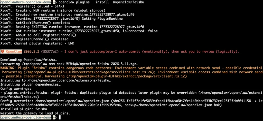 安装飞书插件:openclawpluginsinstall@openclaw/feishu