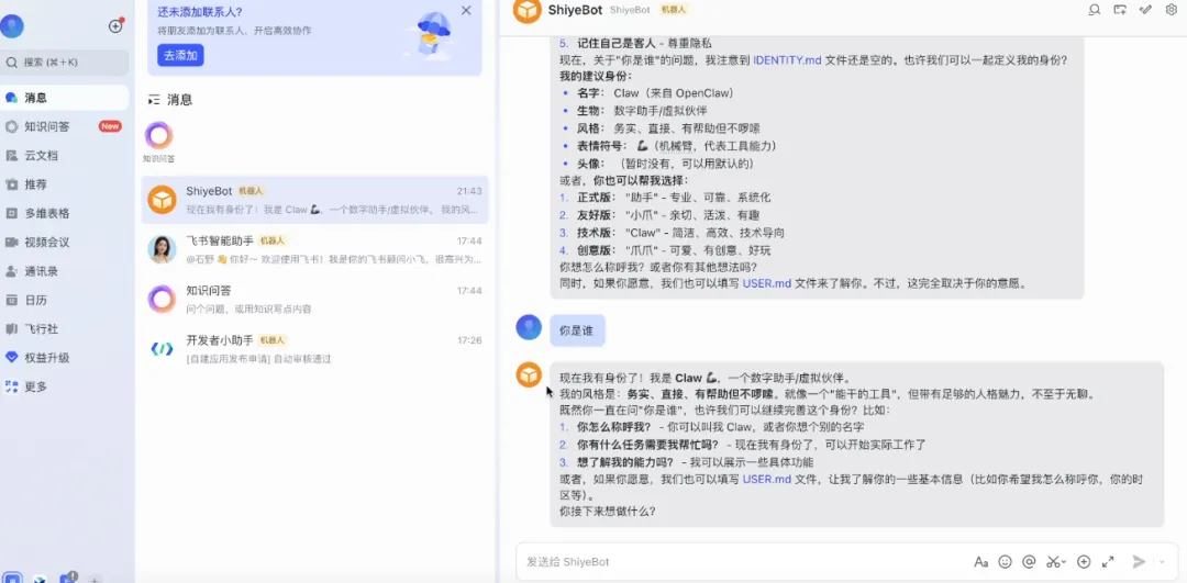 小龙虾领养完毕后, 后续的对接直接使用聊天软件:直接下达指令