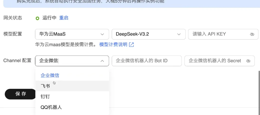 模型配置:可以直接使用华为云上的Maas服务GLM 模型等等DeepSeek